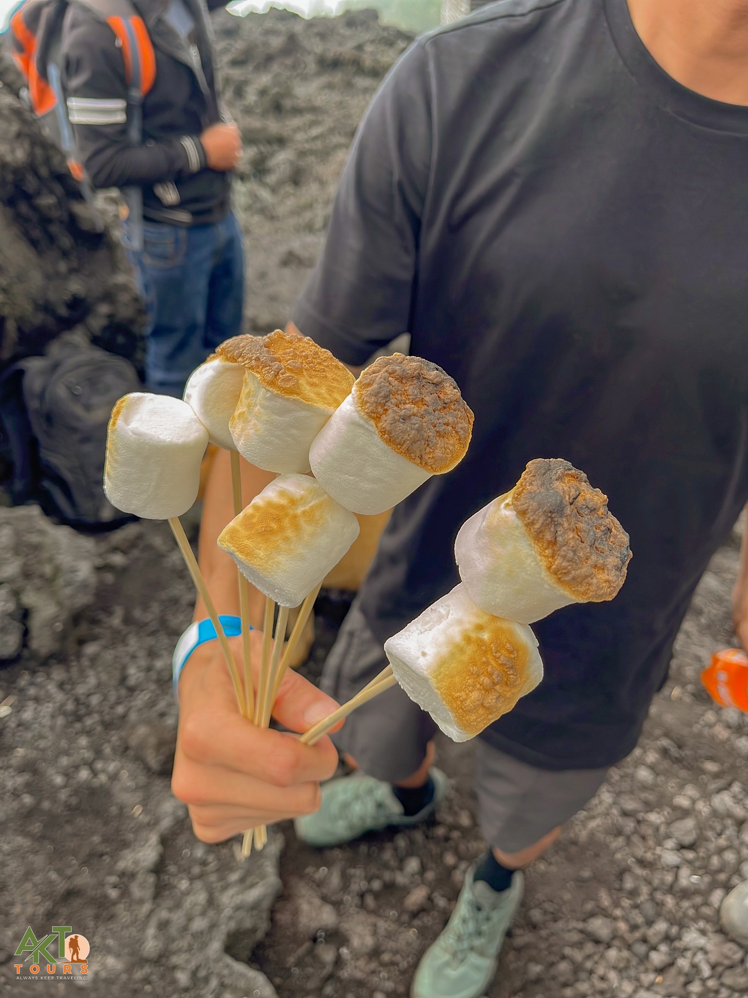 • 🔥 Marshmallow roasting over volcanic stone